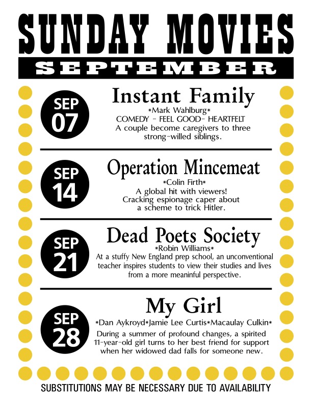 September PBPCA Movie Night SelectionsBy PBP Community Association / September 9, 2025 Hope to see you for our weekly PBPCA Movie Night! Check out this month’s selections: